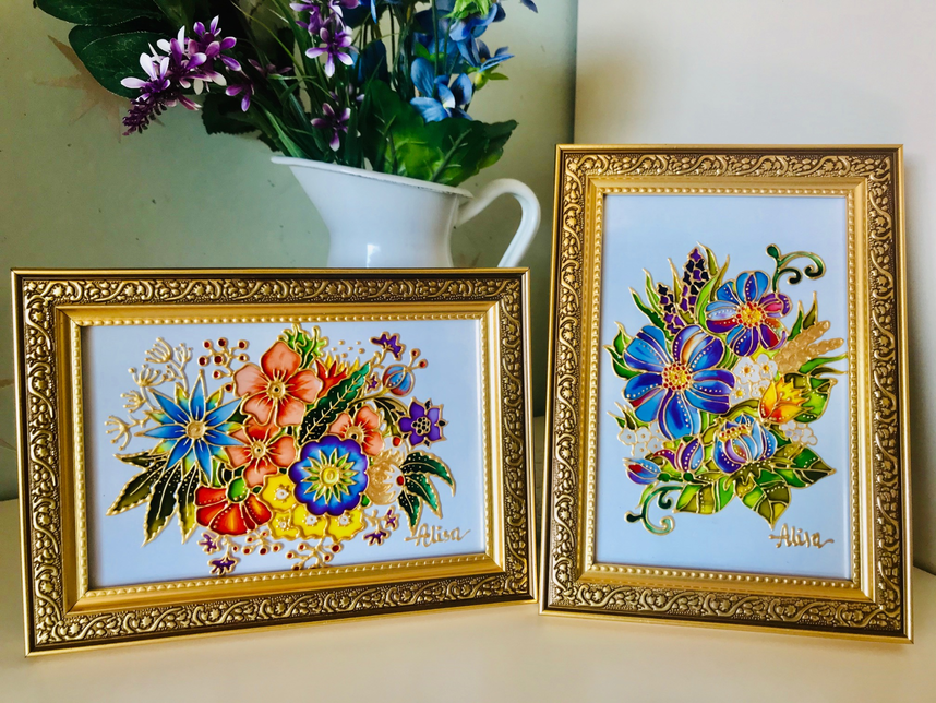 ガラス絵『作品名: Bouquet (ブーケ)』の製作 第二回