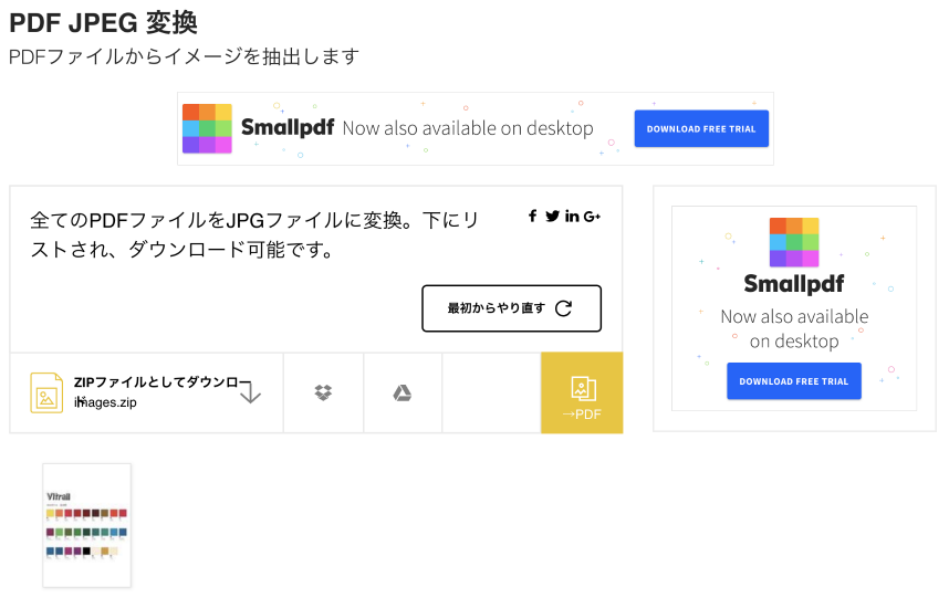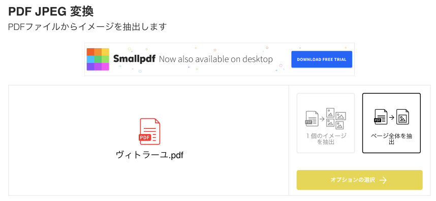 パソコンに変換できるソフトが入っていない場合は、こちらの「PDF JPEG 変換」ページを使うと変換できます。