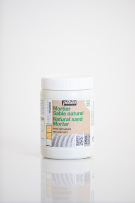 アクリル樹脂に天然の砂粒が入っていて、乾燥後、ひび割れしない、ざらざらとした質感が得られます。